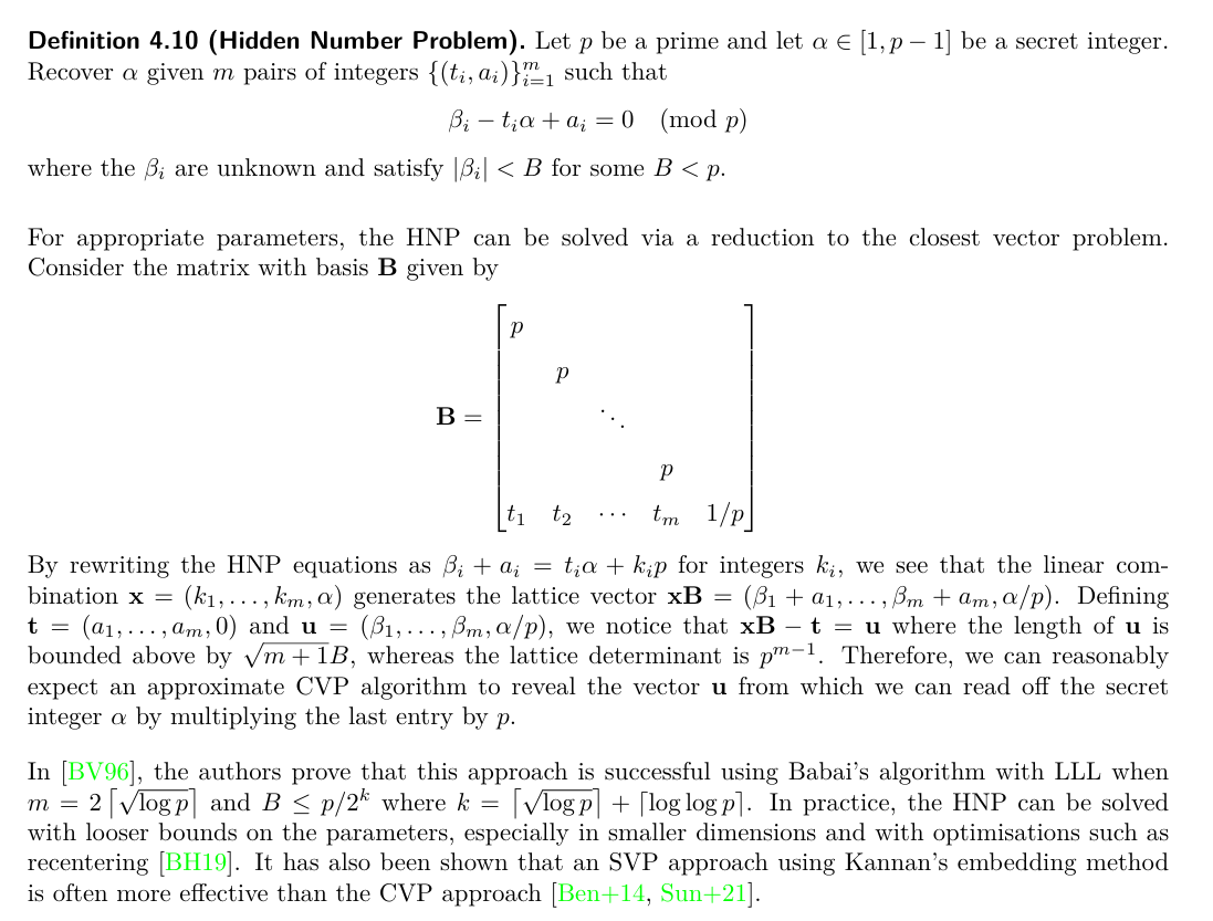 Sau khi đọc và phân tích kĩ code của server thì ta dễ dàng nhận thấy đây là bài toán Hidden Number Problem. Server cho ta các cặp $(t_i, z_i)$ thỏa mãn: